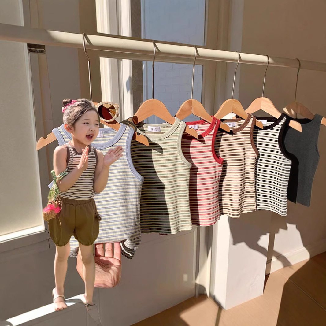 レトロなストライプのストラップの小さいベストの女性の夏の中は底を打って身を修める外は袖なしの上着を着て着ます。
