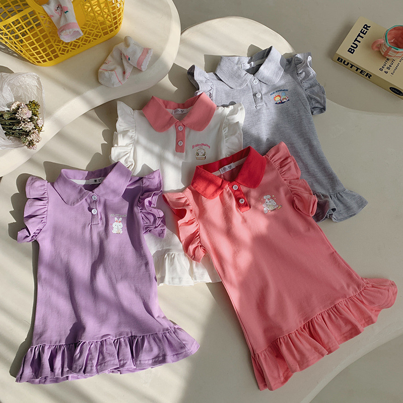 2025夏の新しい女の子の夏服のワンピースの子供の半袖のスカートのpoloスカートの女性の赤ちゃんの漫画の王女のスカート