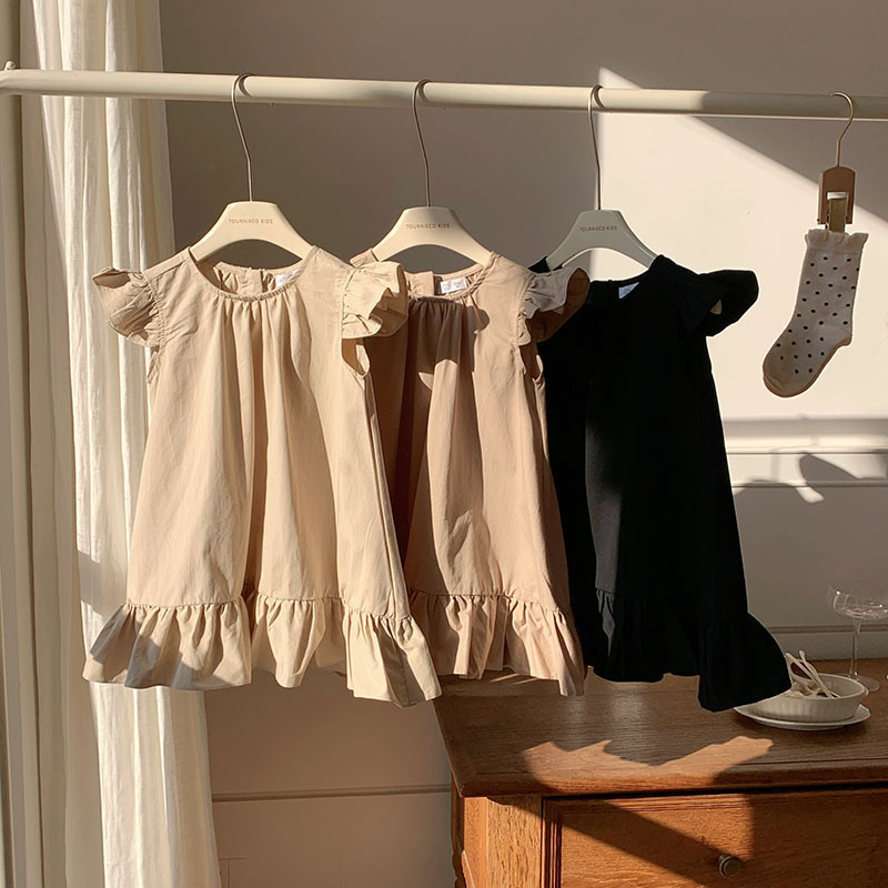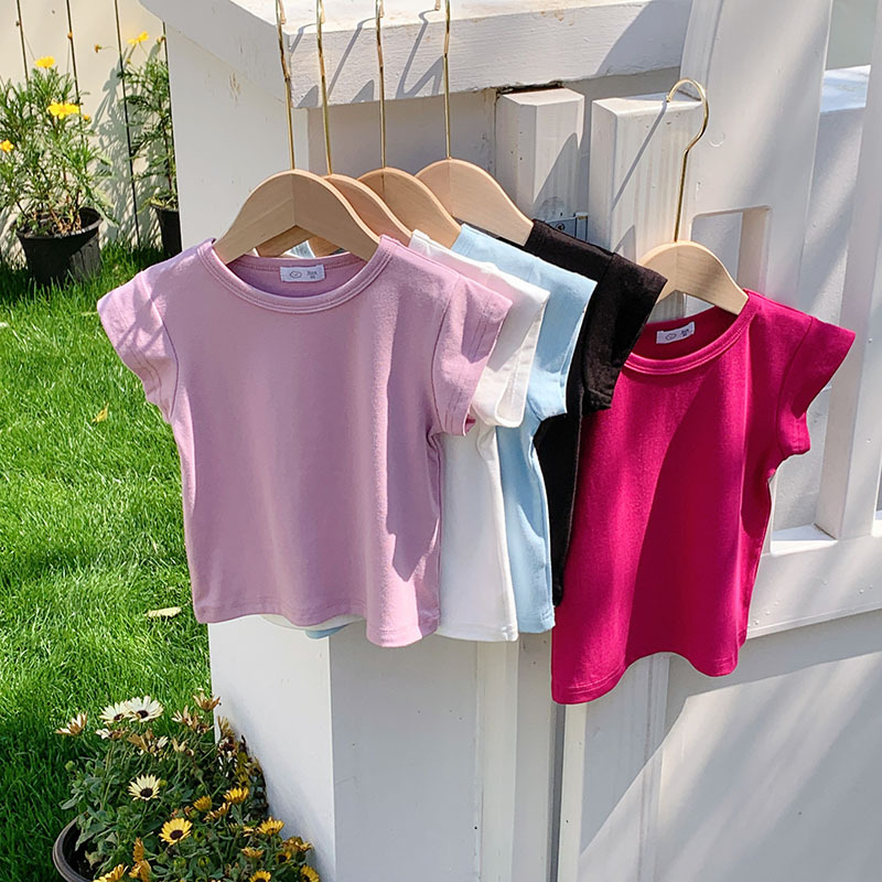 純綿の子供の夏の半袖の純色のtシャツの子供の赤ちゃんの百合の洋風の頭の洋風の女の子の上着の綿のt