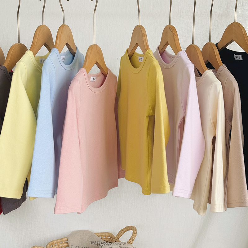 女の子キャンディーカラーボトリングシャツ2025秋冬新作多用途ベビーボーイ起毛インナートップベーシックバージョン長袖