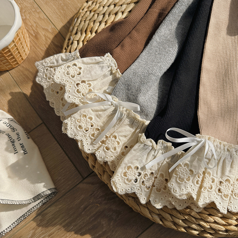 女の子の透かし彫りのレースはズボンの裾をつなぎ合わせます。