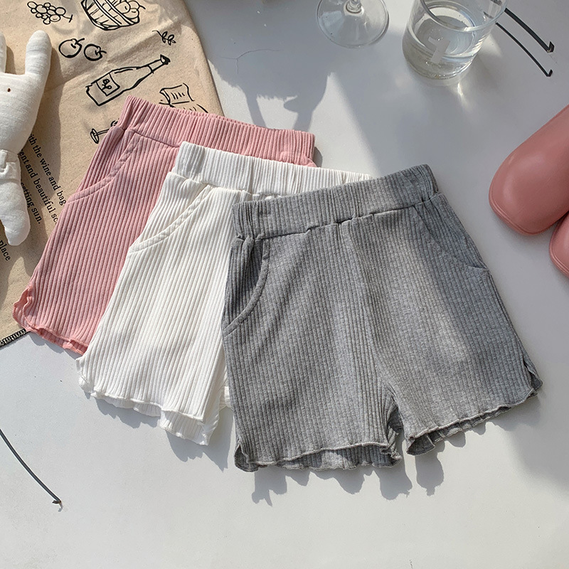 子供用半ズボン卸売り夏の女の子の光防止安全ズボンの外に穴のズボンをはいています。