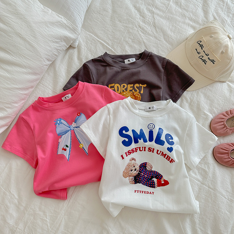 子供用Tシャツ2025春モデル 男女兼用 韓国風半袖 キッズ丸首 カジュアルゆったりトップス 和風風トップス