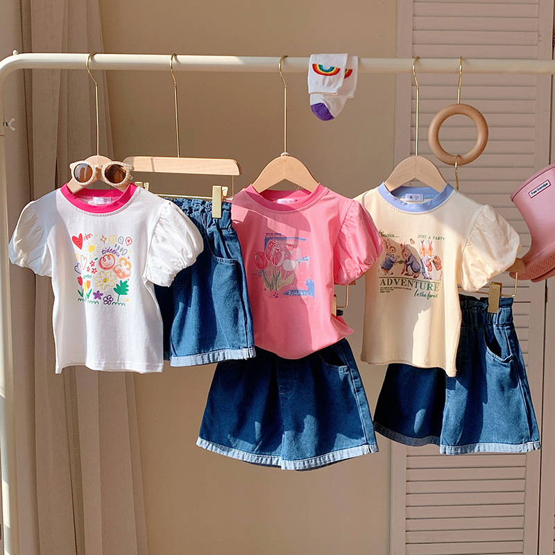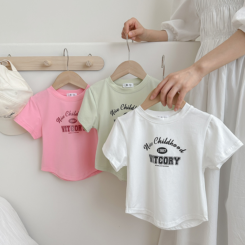 子供服 2024 夏の新スタイル女の子多用途レタープリント Tシャツトップベビーショートカーブヘム半袖