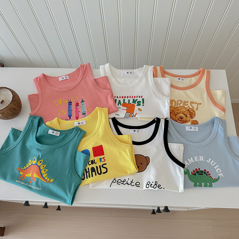 子供ベスト 2025 半袖夏の新製品少年少女漫画プリントベストベビーシンプルなノースリーブ服トレンディ