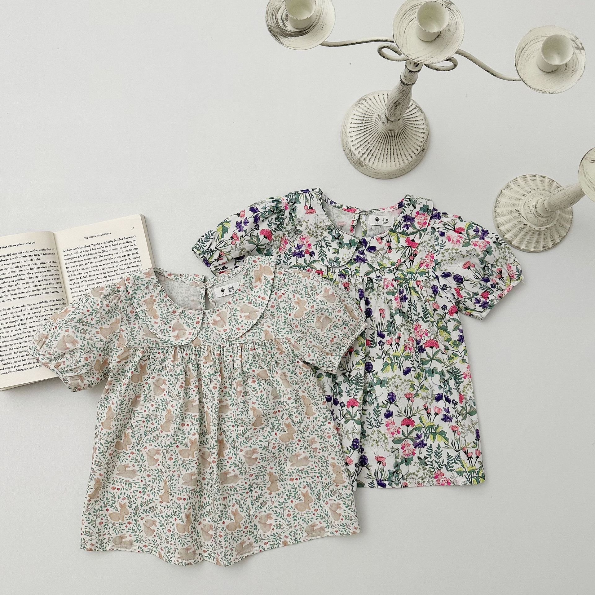 女の子の花のシャツのシャツの赤ちゃんの純色の赤ちゃんの子供の襟の夏の半袖のtシャツの洋風の百合の上着