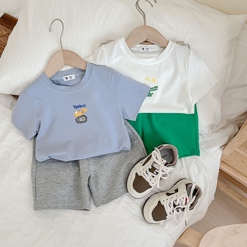 欧米の子供服の弾力性の上着の夏の新商品の男の子の半袖のプリントのtシャツは赤ちゃんの服を卸売りして代行します。