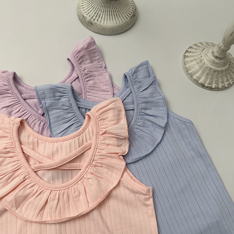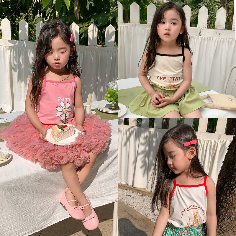夏の韓国系の女の子のベストq弾の柔らかいモチモチ2024新型の韓国版の日本風の子供の袖なしのレースのtシャツの潮