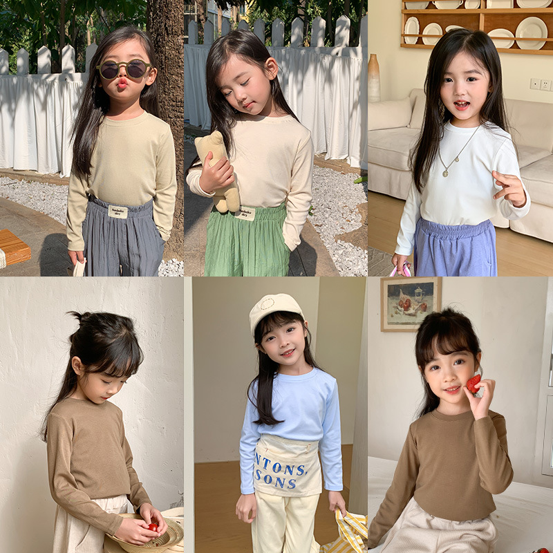 女の子の丸襟の春の底のtシャツの新型の子供の純色の保温の上着の赤ちゃんの高弾の底のシャツ