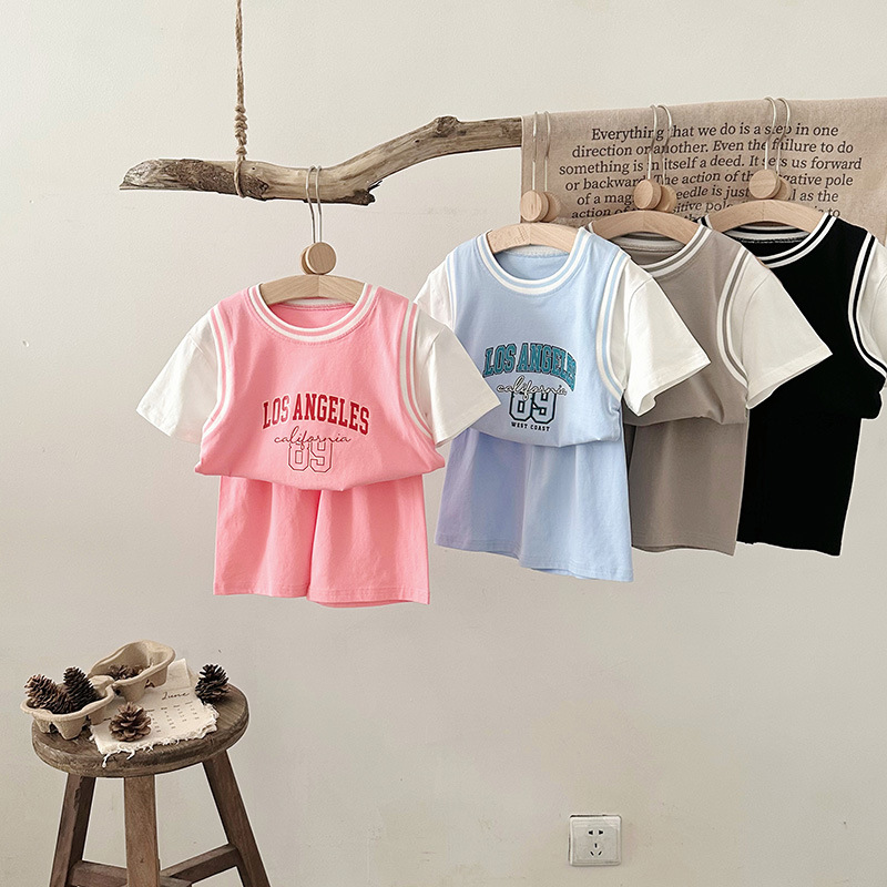 夏の2024新型子供服韓国版insセットの子供用男の子と男の子のpoloシャツの半袖半ズボン