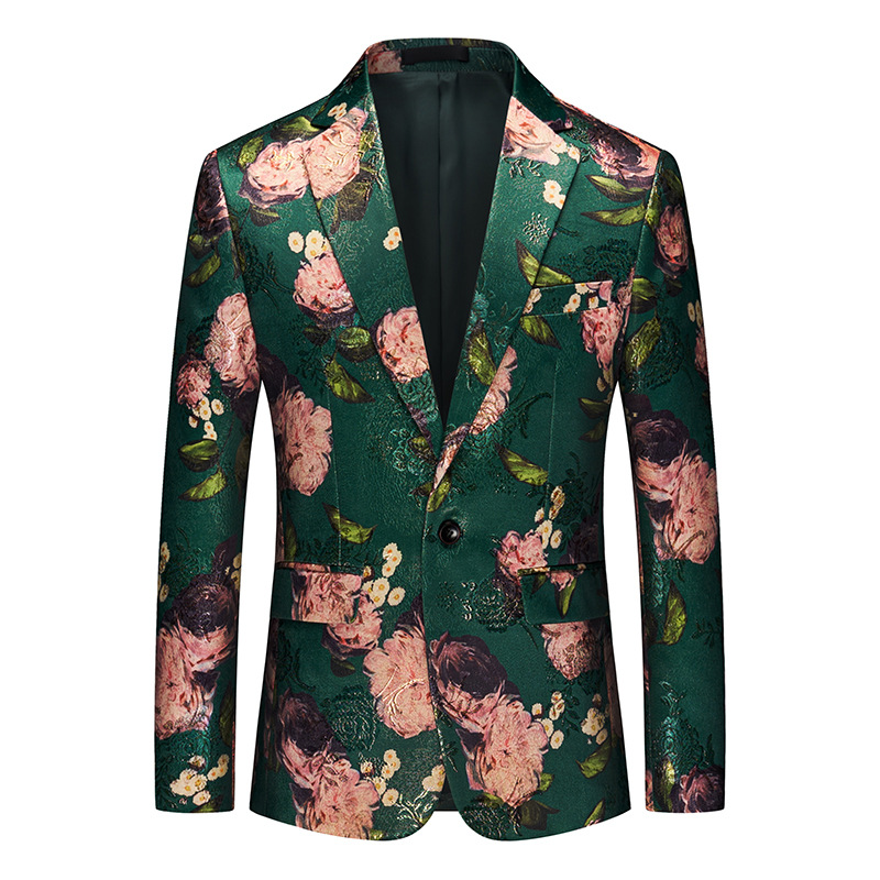 2023メンズ色合わせファッション花柄スーツ個性舞台演出パーティービジネスカジュアル小スーツジャケット男