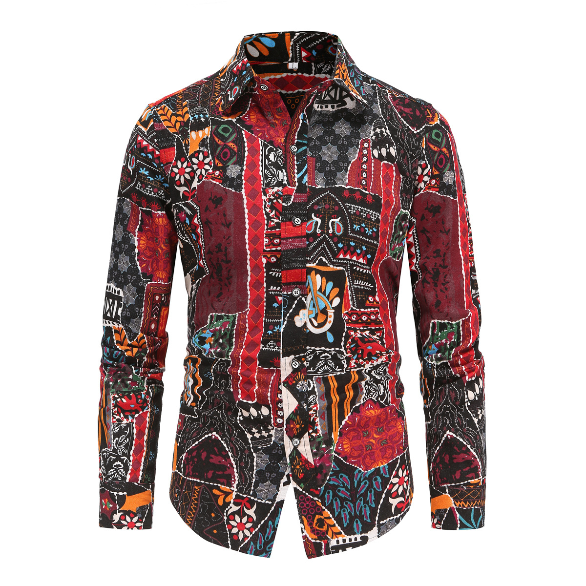 シルクの外国貿易の紳士服2023新品の綿麻の大きいサイズの長袖のシャツの花柄のプリントのシャツの男性は熱い寸のシャツの男性を免除します。