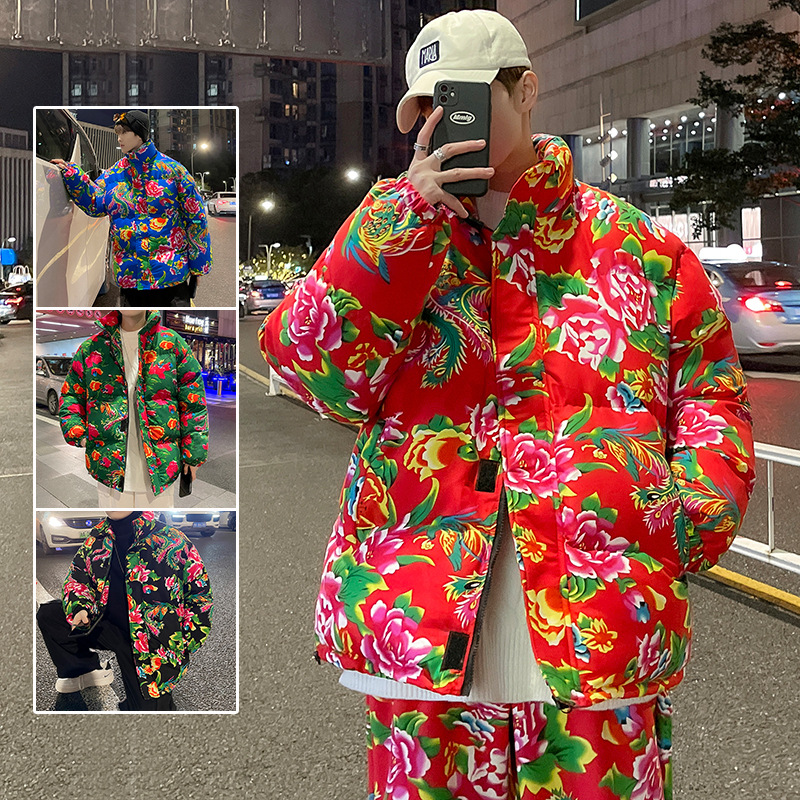 2023中国風東北ゆるい大綿上着男女中性国潮コート綿服保温大サイズ花綿服男