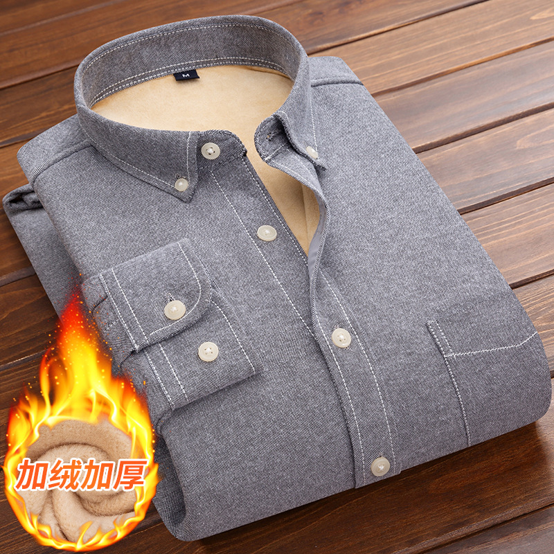 シルクのオックスフォードの冬のシャツの男性のベルベットの厚いビジネスカジュアルな純色のシャツの男性の青年の長袖のインナー
