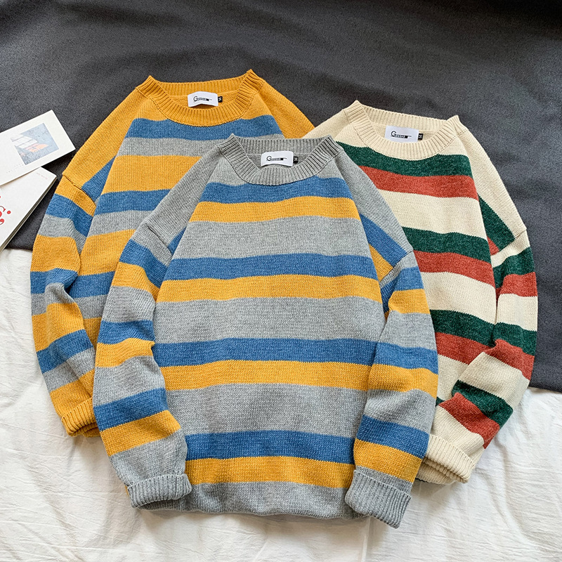 セーター男性速売通外国貿易メンズ春秋ストライプスポーツカジュアル上着丸襟プルオーバー