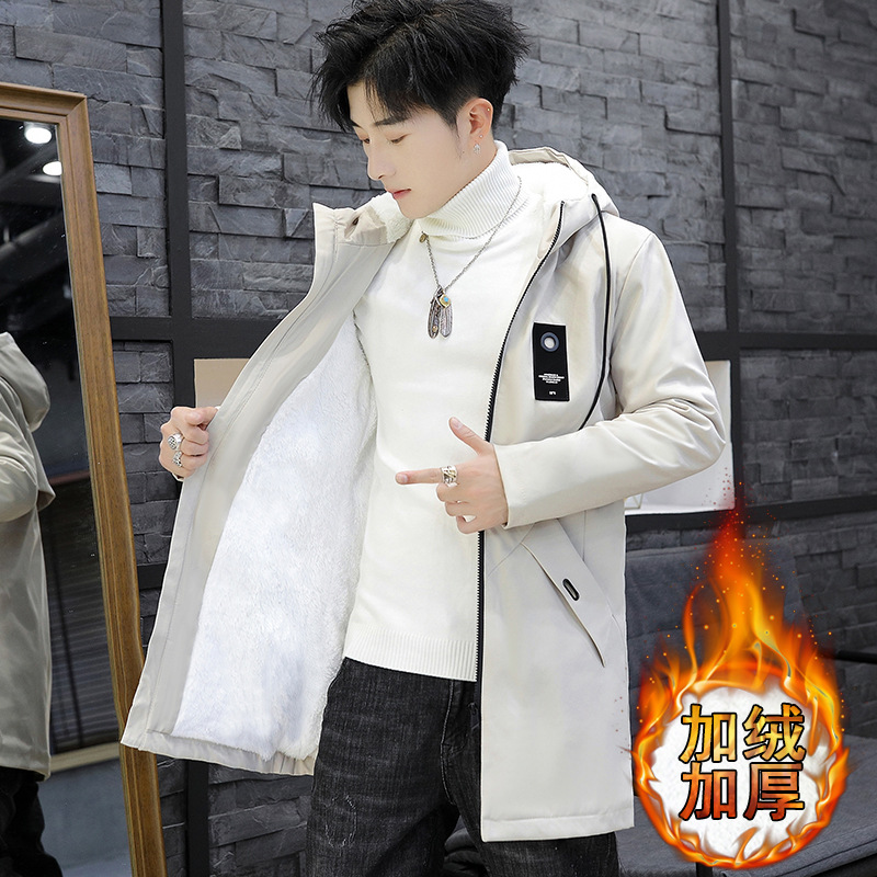 ベルベットの厚い風衣男冬韓版修身ファッションブランドの純色は帽子のカーディガンと男性の綿服を着ている