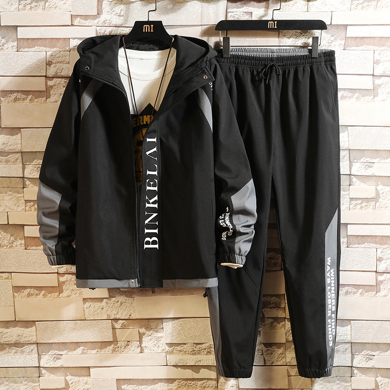2023夏の新しいメンズジャケットのジャケットのスーツの帽子付きカジュアルなスポーツウェアの2ピースのカジュアルなスーツの男性