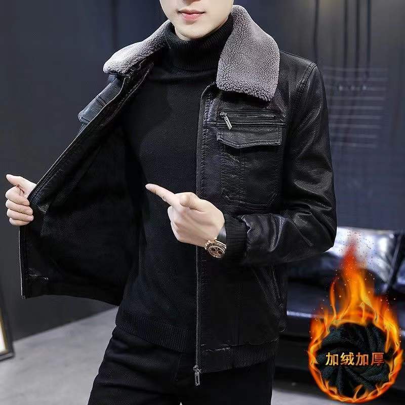 シルクの新商品の男性の皮の服の冬のベルベットの厚い毛の襟の韓国版の修身のカーディガンのジャケットの保温のオーバーの男性の潮