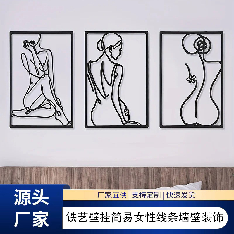 モダンなシンプルなスタイルの鉄製バーホテルの寝室の壁掛けファッション装飾画シンプルな女性の線の壁飾り