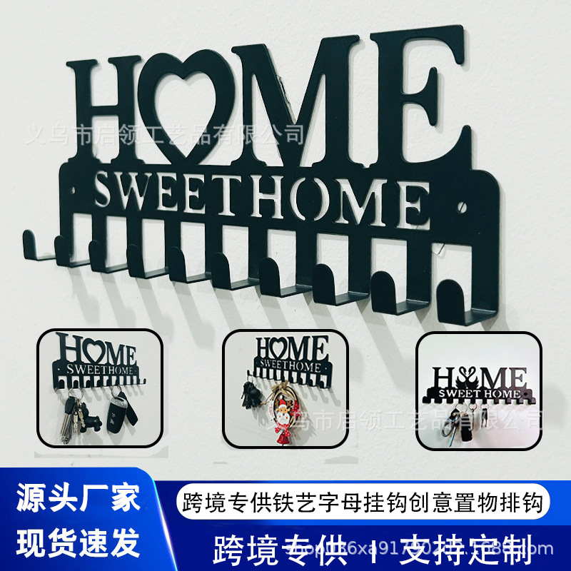 国境を越えた新しい鉄芸home英語フッククリエイティブ置物フックキッチンフックホームキー収納ラック