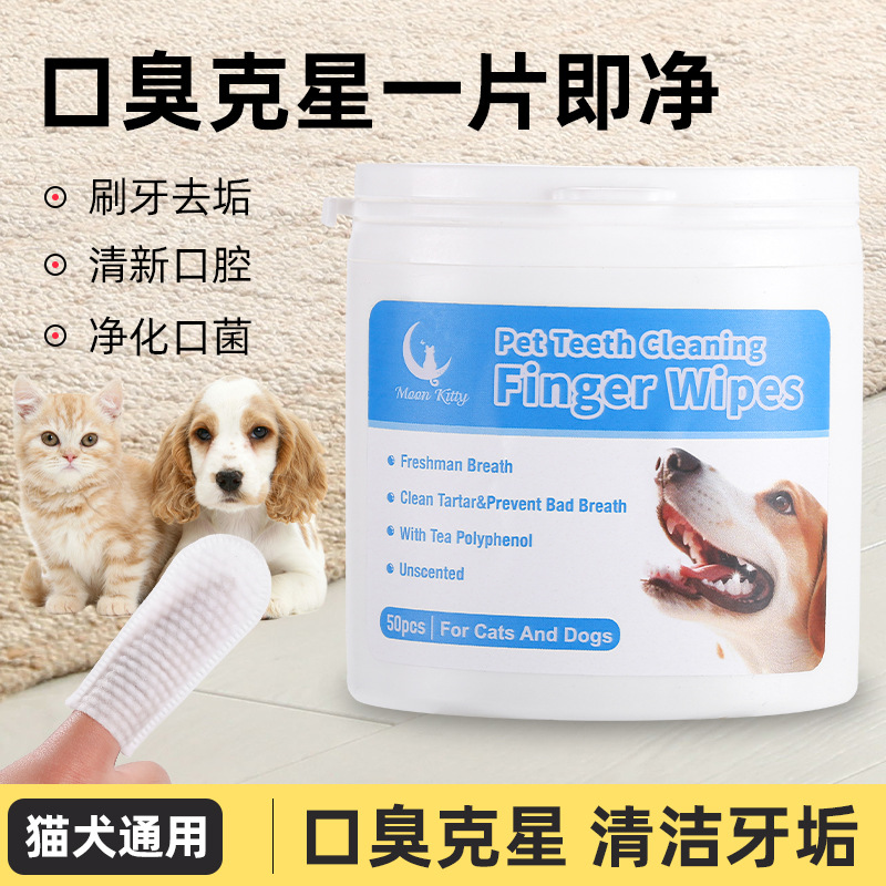 望月猫の清潔な歯の指のカバーのウェットティッシュの使い捨ての指の歯ブラシの不織布の犬の猫の口腔の清潔な歯石