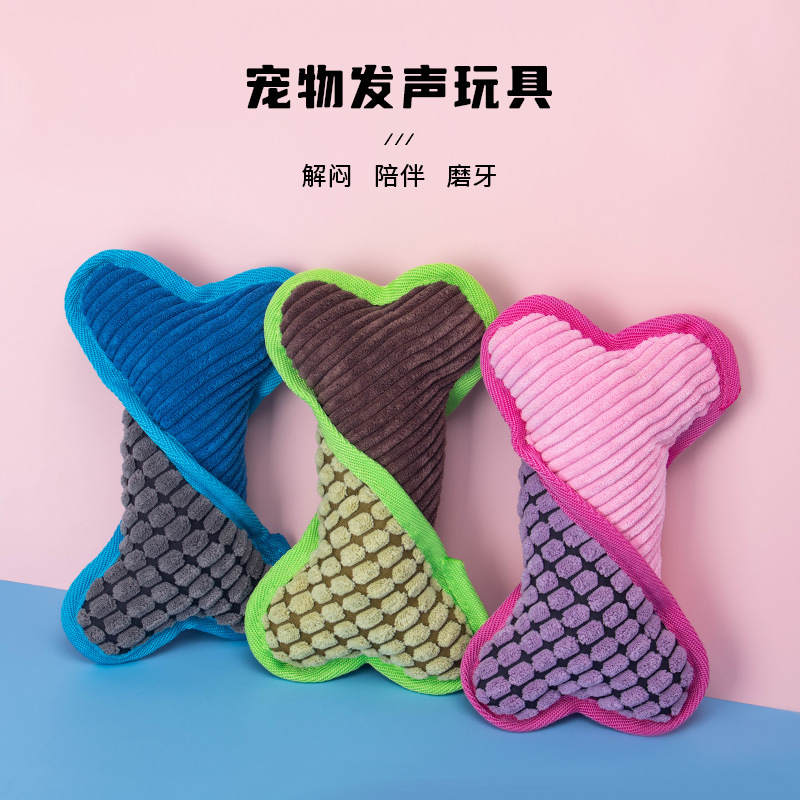 犬の音のぬいぐるみ、骨型、歯ぎしり防止、噛みつき防止ペット用品、コーンベルベットの縁取り、退屈解消おもちゃ