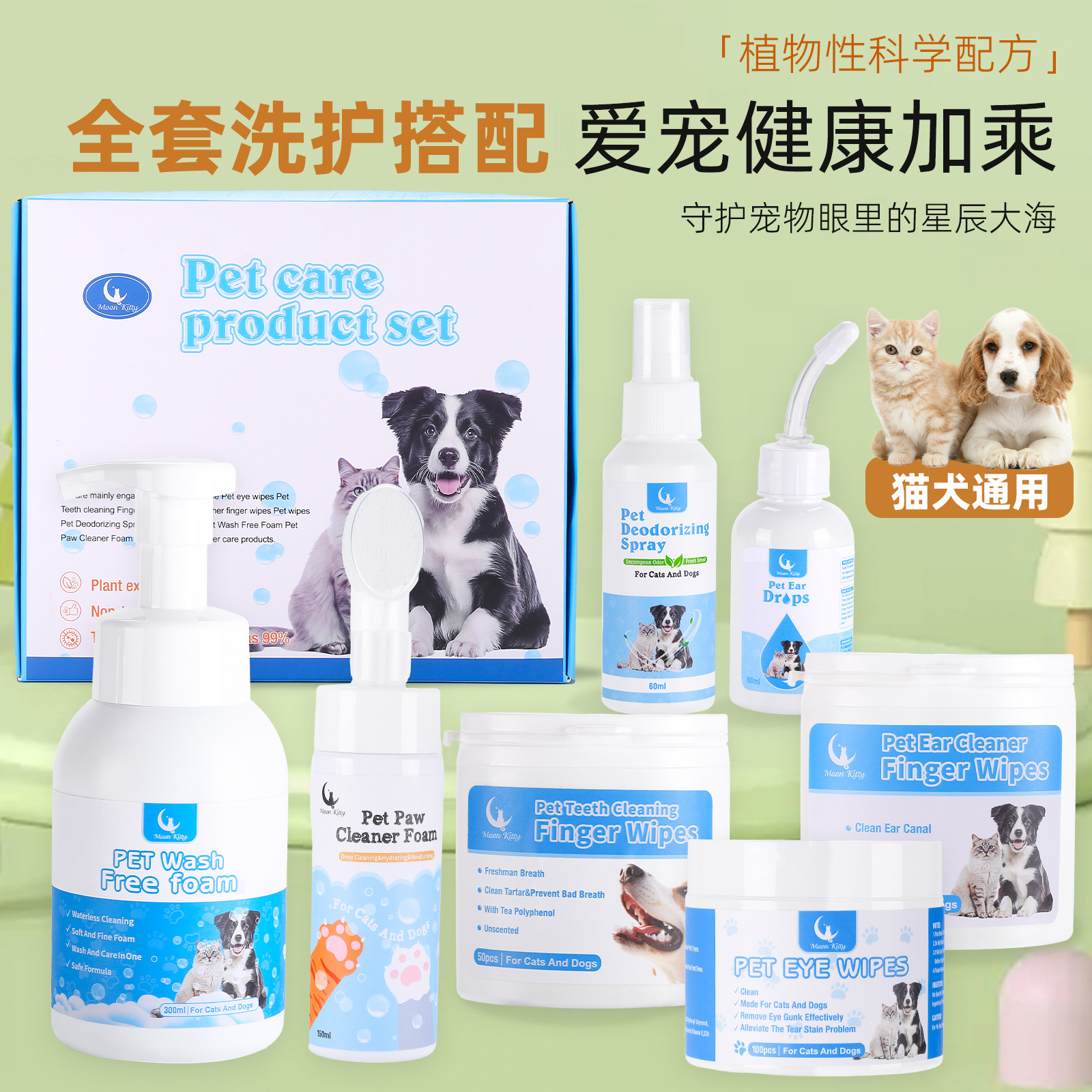 Wangyue Cat クロスボーダー Amazon ペット用トイレタリーセット 犬猫用 ユニバーサル トラベル デオドラント クリーニング 洗濯不要