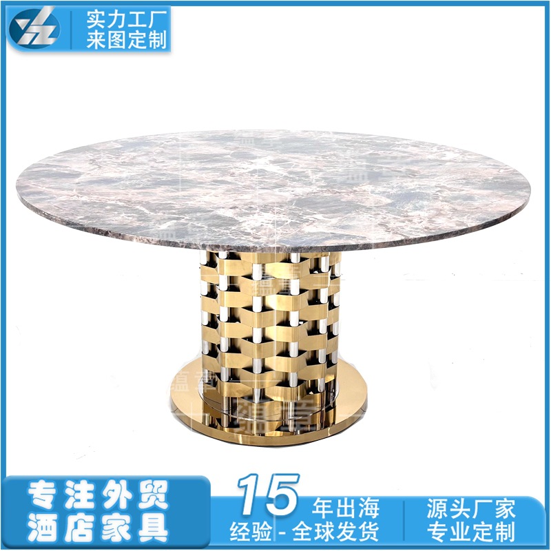 ホテルの結婚式のラウンドテーブルモダンライト高級ステンレス鋼カラーブロック織り大理石テーブルハイエンドヴィラホームダイニングテーブル