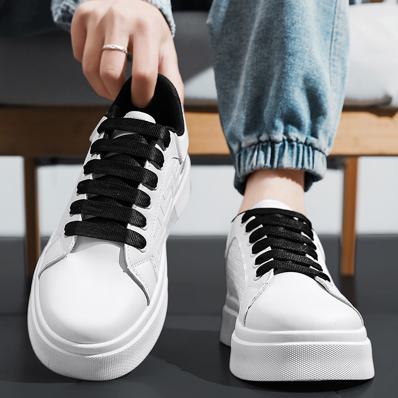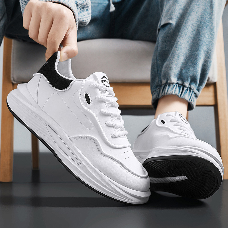 春の男の靴2025の新型のファッションは厚い底のカジュアルな白い板の靴の男性に合わせて高くなって滑り止めの運動のファッションの靴を滑り止めます。