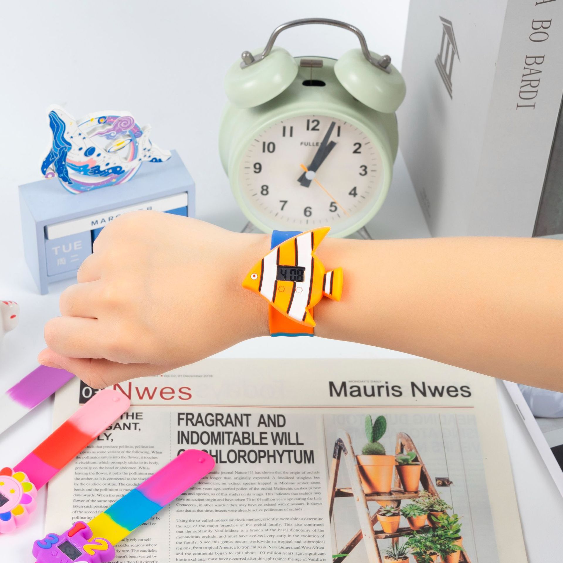 子供のおもちゃの腕時計の電子時計のパチパチと小さい男の子の女の子の幼児の超萌えの漫画のシリカゲルのゼリーの撮影表