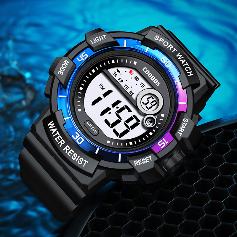 酷宝仕腕時計中学高校男女学生運動防水目覚まし時計多機能電子腕時計夜光腕時計