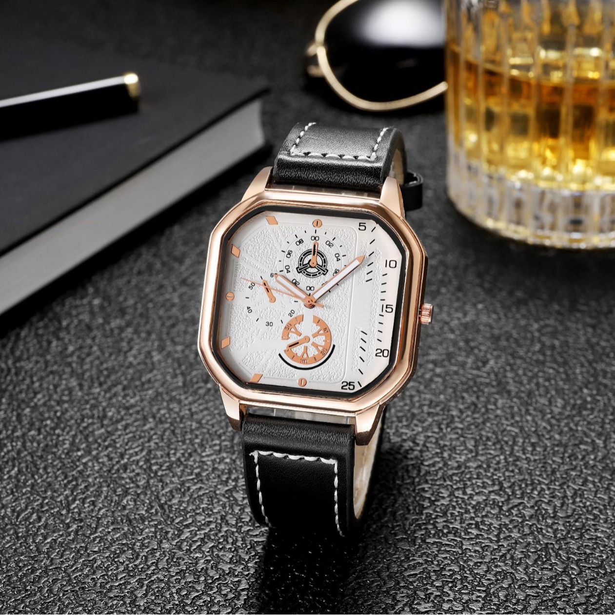 クリエイティブファッションの方殻ベルト男子ビジネス腕時計シンプルなカジュアルスケール石英腕時計男性腕時計