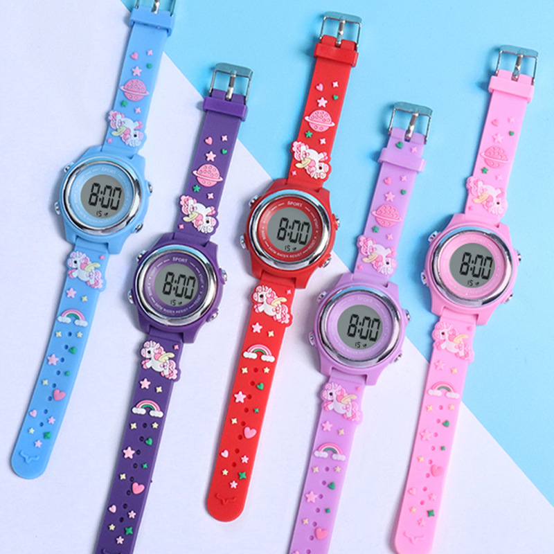 韓国版ファッション学生腕時計ユニコーン多機能防水防落夜光目覚まし時計運動電子腕時計