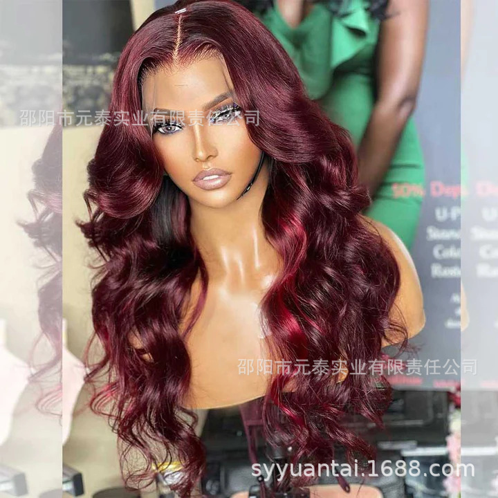 Red highlight 99j color red wig 13x4レンズ・フロントsynchrotic wig