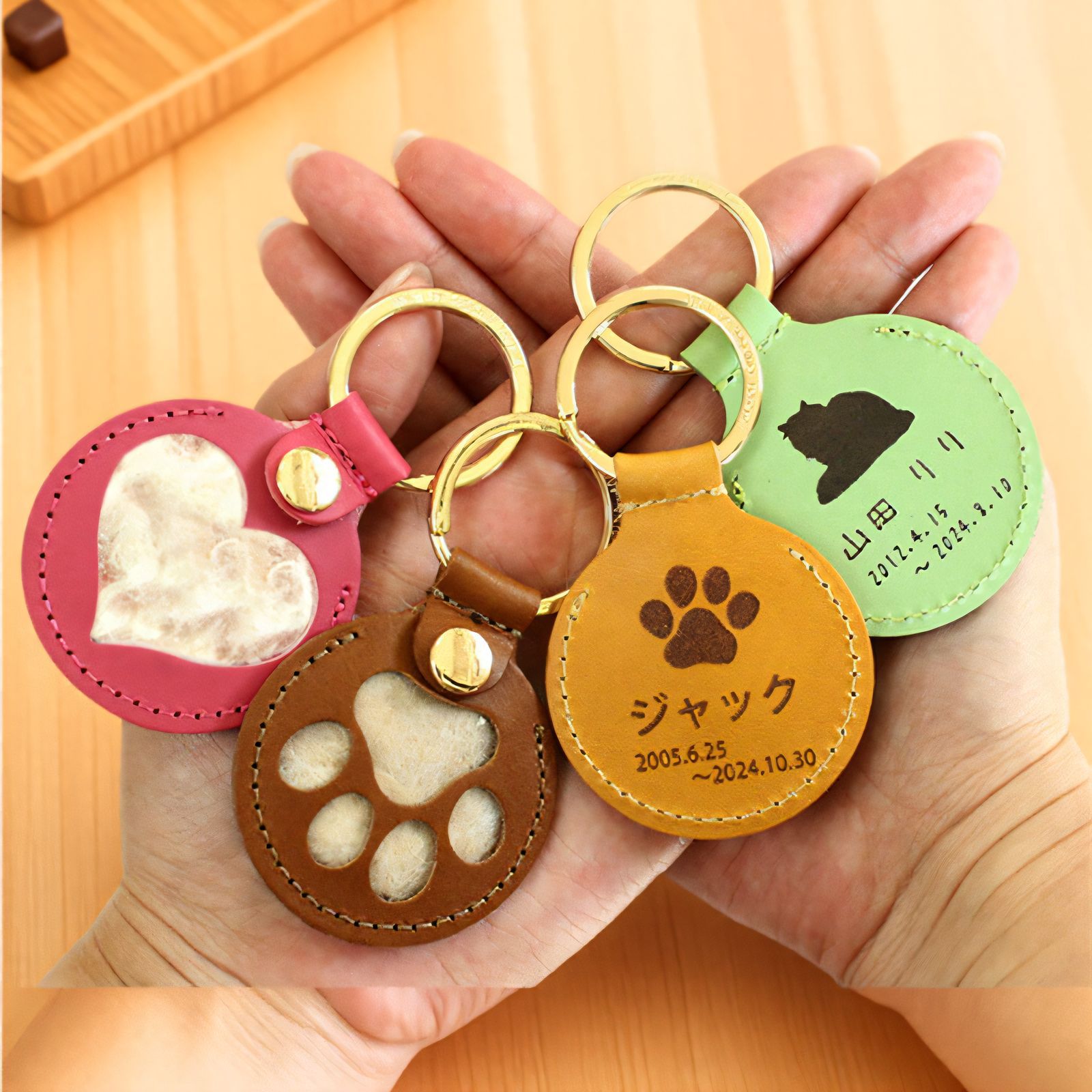 和風ペット毛収納革ケース 猫犬記念キーホルダー DIY名札付き クリエイティブ