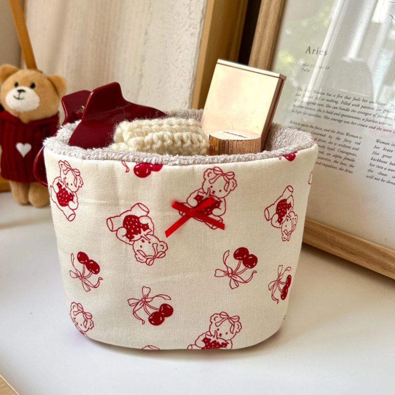 かわいいアニメの蝶結びの筆筒の少女の心の熊のアクセサリーの箱のデスクトップの化粧ブラシの収納袋
