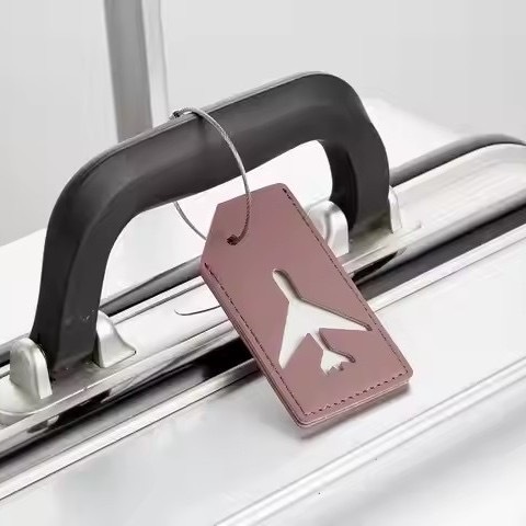 現代のシンプルな搭乗荷物のスーツケースのカバンは革のカードを識別して旅行して標識を託送します。