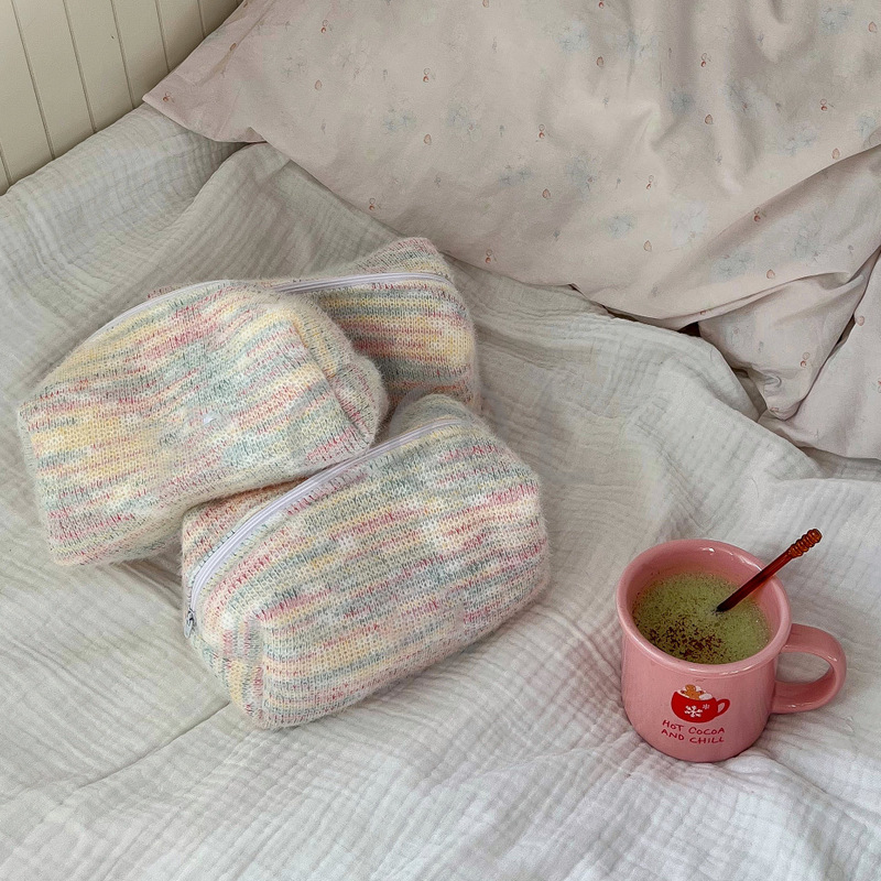 日韓ins風カラフル化粧バッグ柔らかい綿ジッパー袋タオル布手持ちスキンケア洗面バッグ