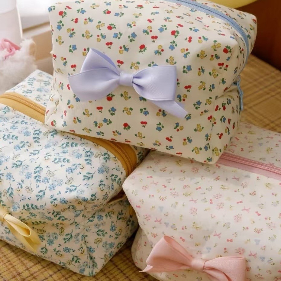 日本式小清新砕花化粧バッグ蝶結び綿収納バッグ旅行スキンケアジッパーバッグ