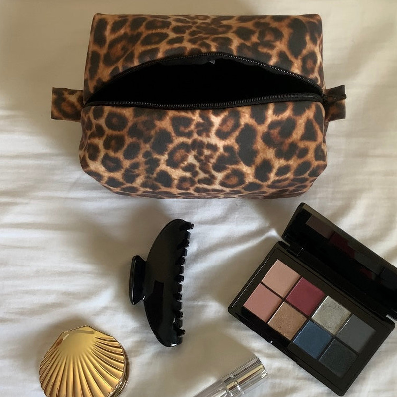 欧米sexy黒皮豹柄化粧バッグ高颜値手持ち洗面バッグ旅行スキンケア携帯ジッパーバッグ