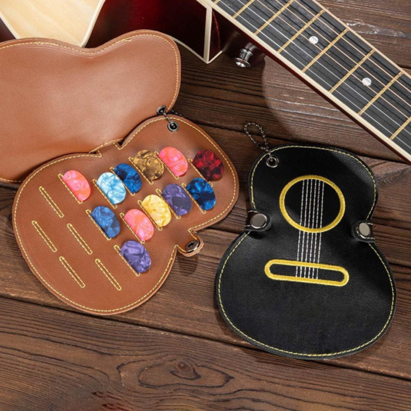 クリエイティブ革ピック革カバーギターピック保護カバー刺繍ウクレレ弾片収納クリップ