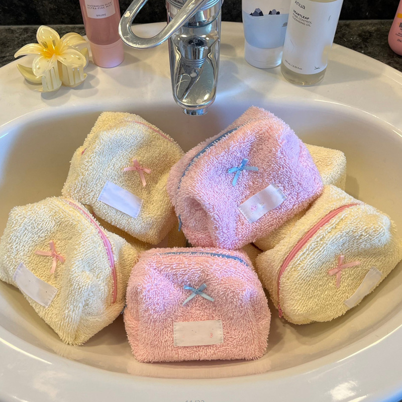 日韓小清新ぬいぐるみ化粧バッグmini蝶結び口紅収納バッグ少女毛むくじゃらバッグ