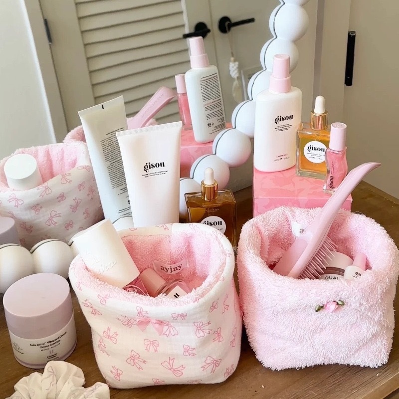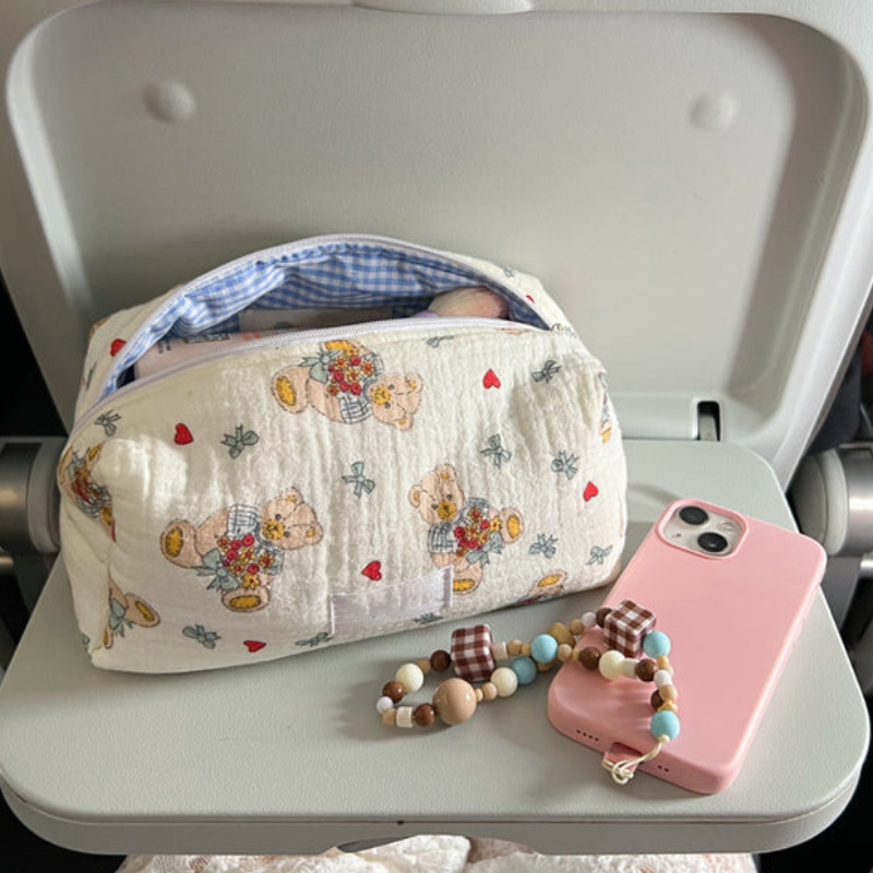 かわいい漫画の熊の洗面器の少女の心は綿のファスナーを挟んで大容量のスキンケアの収納袋を包みます。