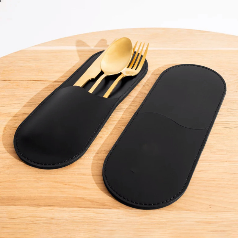 現代のシンプルな革の食器袋の携帯用ナイフとフォークの収納バッグ