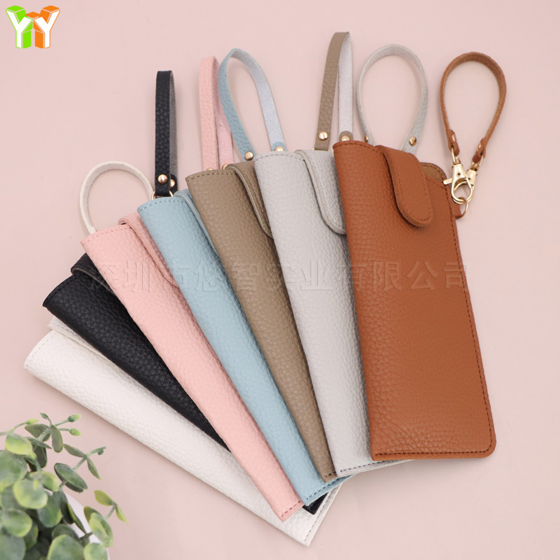 新しいシンプルなサングラス収納袋サングラス紛失防止レザーロールバッグ無地近視メガネケース