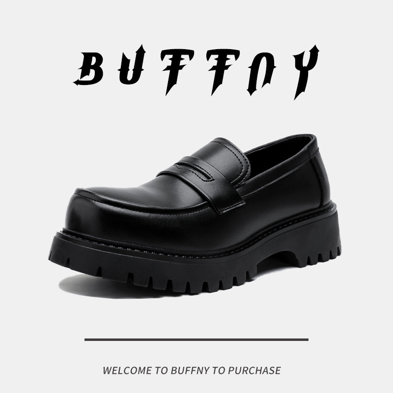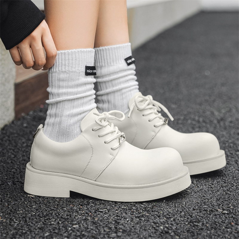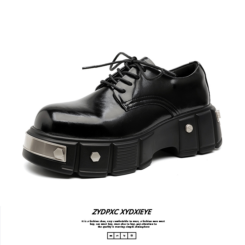 小衆厚い底炭黒朋克徳比靴男高級感マットラウンド靴高街大頭工装カジュアル靴