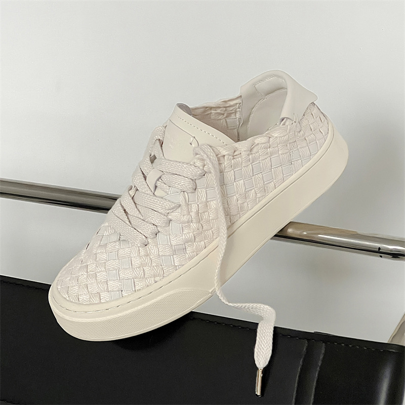 通気板靴を編む2024夏は快適で、純色のキャンバス靴の厚い底が高くなります。