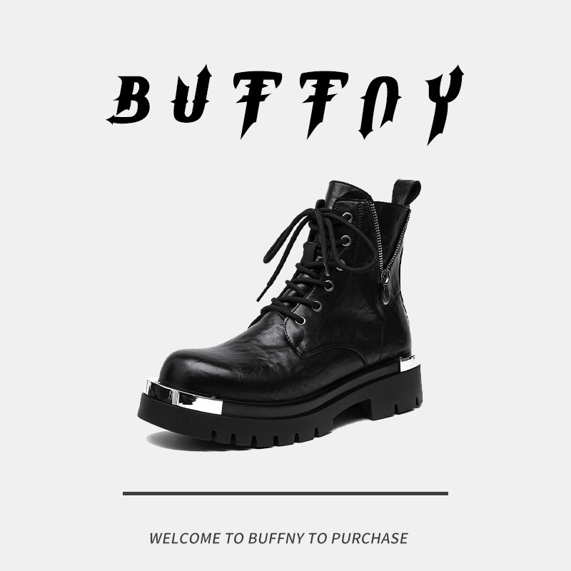 黒の厚い底が高くなったマーティンブーツ男秋の新型英倫風ショートブーツ欧米の街の機関車ブーツの復古潮