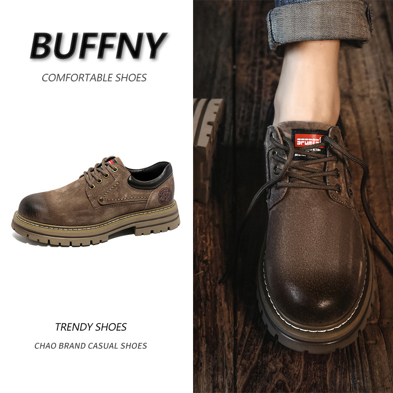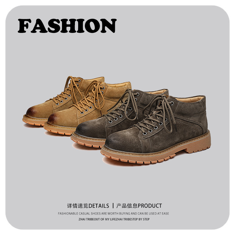 英倫レトロ厚い底百合工装靴反絨靴2023春秋新作青年ファッション職業男靴