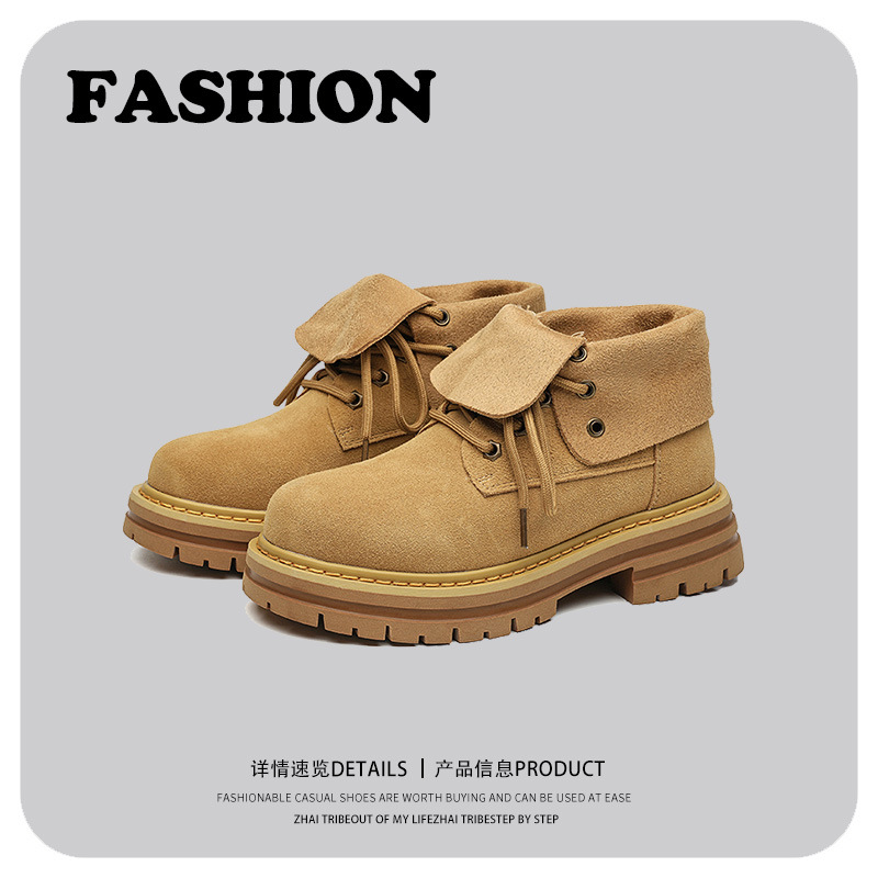 英倫風アウトドアカップル工装ショートブーツ大黄靴2023秋の新型青年百合ins風マーティンブーツ